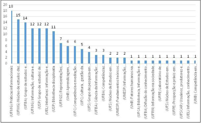 É importante destacar que o quantitativo de grupos de pesquisa, no campo da Ciência da Informação, reflete a demanda pela pesquisa e a produção científica nos últimos anos, pelas agências financiadoras públicas, a exemplo de CAPES, CNPq e fundações de apoio à pesquisa em nível estadual, que estabelecem critérios de distribuição de recursos e priorizam investimentos em áreas estratégicas para o desenvolvimento da Ciência, da Tecnologia e da Inovação no Brasil (SANTANA et al., 2014).