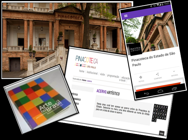 Algumas formas que a Pinacoteca utiliza e dispõe na comunicação de seu acervo e serviços são: visita presencial, catálogos impressos, por meio de website e, mais recentemente, desde junho de 2014, existe uma nova forma de interlocução com o museu. Trata-se do aplicativo para dispositivos móveis[2] que funciona com o sistema Android. O aplicativo foi construído em parceria com o Google Cultural Institute e mostra detalhes sobre as principais obras que compõem as exposições, textos explicativos e visitas virtuais narradas pelos curadores da Pinacoteca. Cada uma dessas formas têm suas especificidades, limitações e novos questionamentos.