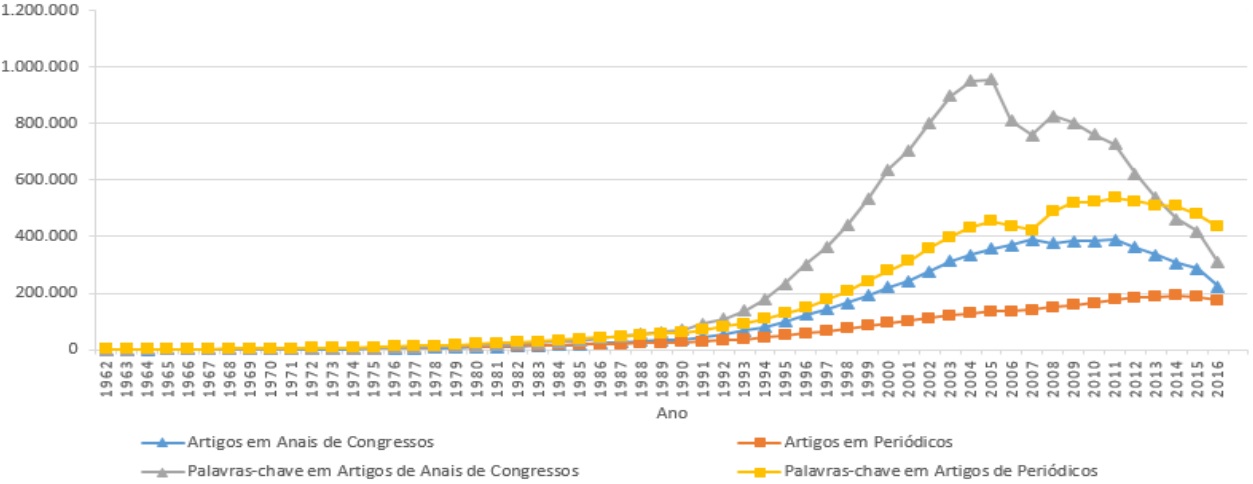 Consequentemente, o presente trabalho apresenta-se como a primeira análise textual abrangente, ao considerar as palavras-chave dos artigos publicados pelos doutores brasileiros ao longo dos últimos 55 anos registrados em seus currículos cadastrados na Plataforma Lattes.