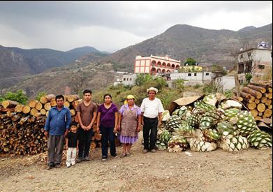En concreto, el patrimonio social refiere al uso y manejo que los maestros mezcaleros, con sus unidades productivas (Foto 7), aprendices y ayudantes hacen del agave, echando mano de manera creativa de su entorno, actualizando los saberes locales y entendiendo la bebida en una dimensión más compleja que sólo la de mercancía[23]. El maguey y el mezcal forman parte del ciclo de la vida, no se vive para producir mezcal, ya que también hay que sembrar maíz, frijol y calabaza para comer; criar gallinas, guajolotes[24] y cerdos; conservar las áreas boscosas.