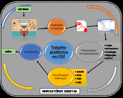 f) depois de passado pelas políticas de preservação, será feita a catalogação e/ou classificação desse objeto digital, podendo ser por meio de indexação específica das políticas do repositório, do AACR2, RDA, CDD ou CDU;