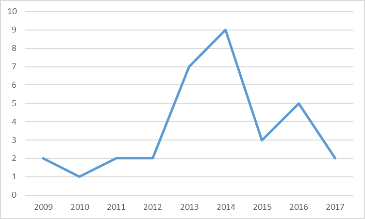 Nos 33 artigos analisados, constam 473 citações utilizadas para fundamentar os estudos de caso ou relatos de experiência selecionados. Em relação ao período cronológico mais expressivo das publicações, os anos de 2013 e 2014 registraram o ápice da produção.