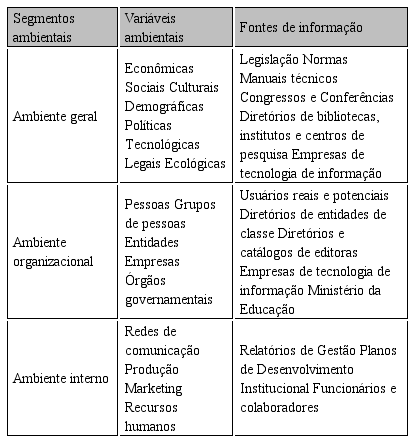 Keywords: Information sources, Organizacional environment, Strategic planning, University libraries.