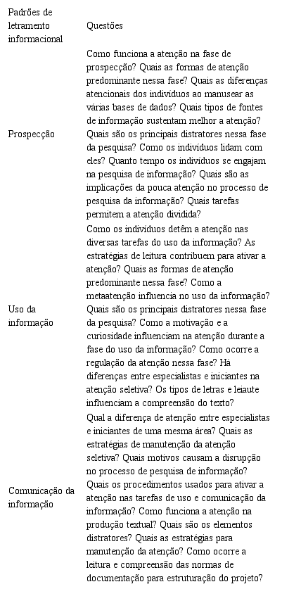 Portanto, observa-se que as discussões sobre a atenção no letramento informacional ainda são incipientes na ciência da informação. As pesquisas apresentadas mostram que há um longo caminho a percorrer em direção à compreensão dos processos cognitivos, em especial da atenção no letramento informacional. Isso mostra a necessidade de reconhecer a importância do ensinar e aprender melhor no processo de LI.