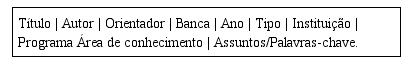 O método adotado envolveu a busca simples aplicada ao Catálogo de Teses e Dissertações – CAPES[8] e a Biblioteca Digital Brasileira de Teses e Dissertações – BDTD[9]. Não foi feito recorte temporal nas buscas, que abrangeram todo o período com produção disponível.