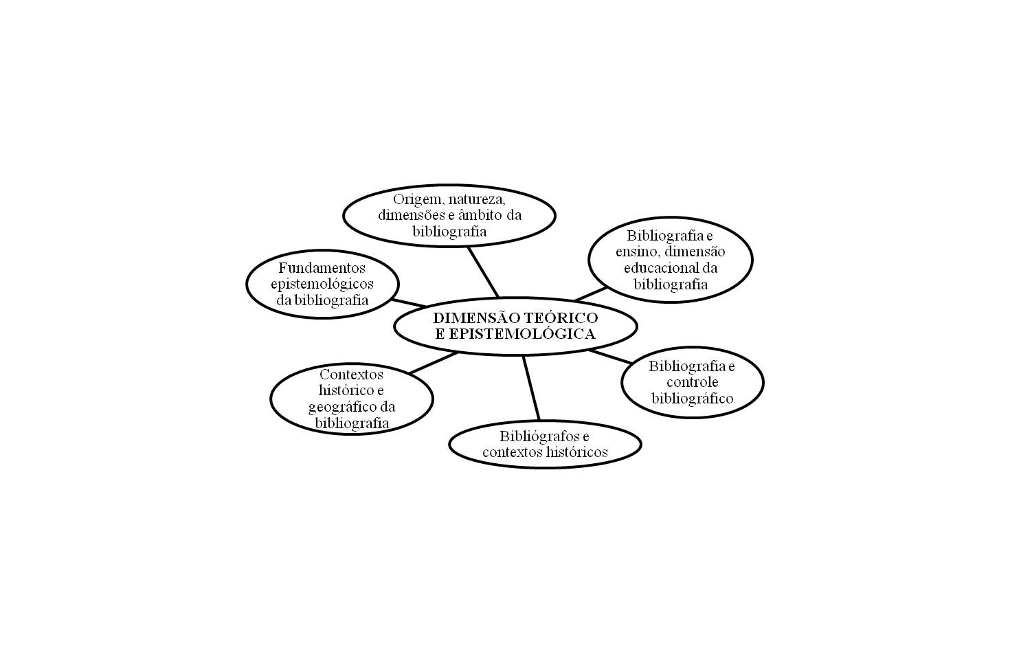 Essa dimensão abrange questões relacionadas: à origem, natureza e âmbito da bibliografia; aos fundamentos teóricos da bibliografia; aos seus contextos histórico e geográfico; aos bibliógrafos e seus contextos históricos; à bibliografia em relação ao controle bibliográfico e à bibliografia e sua dimensão educacional.