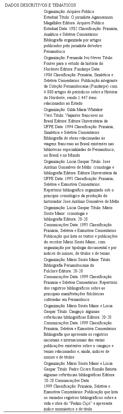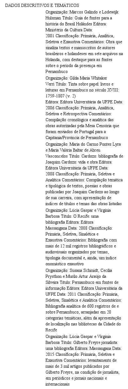 Keywords: Bibliographies, Bibliographic repertoires, Pernambuco, History.