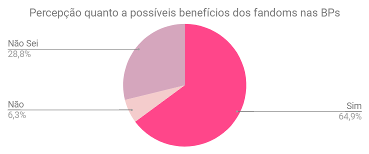 A última inferência, Percepção dos benefícios das atividades dos fandoms à comunidade, buscou verificar se os respondentes acreditam que essas iniciativas trazem benefícios a BP e quais seriam eles.