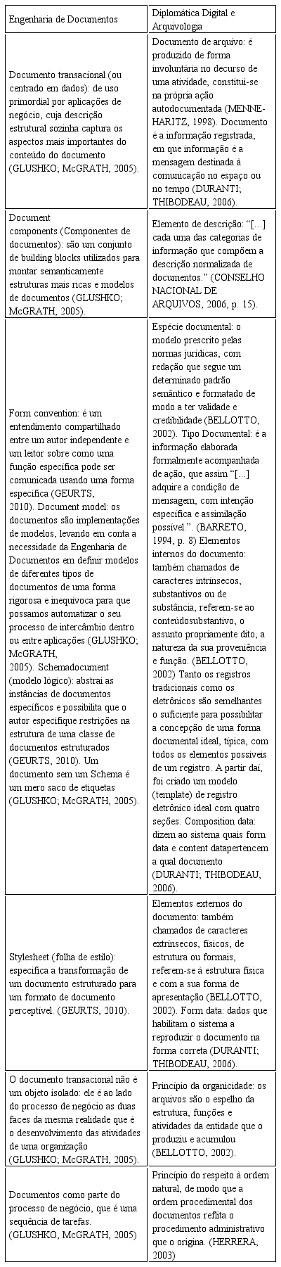 Nessa medida, a abordagem multidisciplinar nos parece muito útil para o preenchimento desta lacuna, em que a Diplomática Digital pode colaborar com a Engenharia de Documentos na aplicação de requisitos de autenticidade nos seus conceitos de Document components, Form convention, Document model, Schema document e Styles heet.