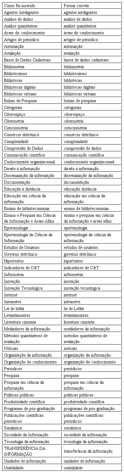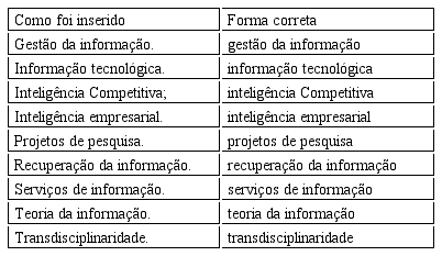 Nesse ponto, é válido destacar que o uso do TBCI se apresentou coerente ao corpus escolhido, apesar de não abranger de forma satisfatória o que os usuários entendiam como propício para representar o conteúdo de alguns artigos, reforçando a necessidade de atualização (aperfeiçoamento) do tesauro em questão.