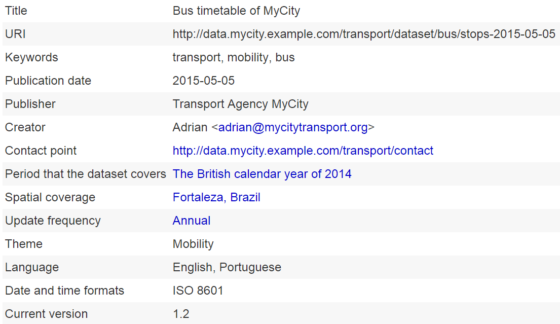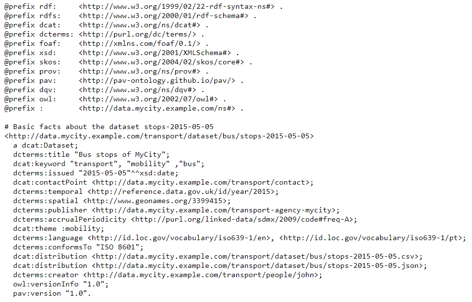 Verifica-se que, independente do domínio, é imprescindível que os dados disponibilizados sejam compreensíveis, seja por humanos ou por agentes computacionais, destacando-se a necessidade do uso de metadados apoiados em padrões existentes, utilizando vocabulários normalizados, bem como a disponibilização livre de erros de sintaxe. Afirmação esta reforçada pelas boas práticas para dados na web (LÓSCIO; BURLE; CALEGARI, 2017). As Figuras 1 e 2 apresentam, respectivamente, os metadados legíveis por humanos e por aplicações computacionais.
