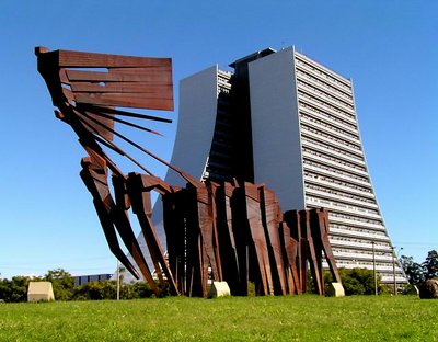 Em Corona (1973) encontramos, ainda, que o monumento foi executado em aço anticorrosivo, inalterável e solda elétrica com eletrodos OK, também inalterável.
