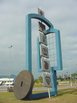 Do ponto de vista de sua representatividade, esse monumento é constituído por uma estrutura que lembra uma janela e uma porta das casas açorianas do passado, na cor azul, tendo a seu lado uma roda de carreta, atualmente desaparecida. Os elementos que compõem o monumento, do ponto de vista formal e simbólico, apresentam diferentes aspectos que não só marcaram a vida dos açorianos na região, mas, sobretudo, os deixaram como legado para as gerações futuras. Este é o caso da roda, que simboliza a forma de transporte usada inicialmente pelos açorianos nos deslocamentos pela Ilha e pelo Continente. Além dela, o conjunto tem a atravessá-lo verticalmente uma espécie de mastro onde estão colocadas, em linha vertical, seis placas com símbolos representativos da cultura açoriana. São eles: a coroa do Espírito Santo, representando da fé do grupo no poder divino e do qual se mantêm devotos até hoje; o touro, representando a cultura das touradas que foi trazida dos Açores e, na Ilha, era representada pela “farra do boi”; o bilro, atividade feminina de “fazer renda” e que também marca a vida de muitas comunidades até o presente; o peixe, simbolizando a pesca na origem do grupo e, ainda atualmente, de grande relevo na vida litorânea de Santa Catarina; o jarro, que simboliza o trabalho com a cerâmica, em especial a cerâmica utilitária produzida tanto nos Açores quanto no Estado catarinense; o pão por Deus, representação de origem religiosa simbolizando, no monumento, as tradições orais açorianas.