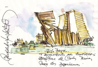 [...] forma ciclopea dos grandes monumentos de outrora, digno de uma geração de heróis, pois assim podem ser considerados os primeiros açorianos que demarcaram a nossa cidade para os grandes destinos. (CORONA, 1973, p. 3)