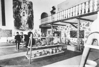 Na sede de 1939, a exposição do popular no IFB se instalou definitivamente no subsolo. Todavia, o noticiário nem sempre ajuda a entender se as exposições temporárias ocorriam também no espaço do Museu (lembrando a sala criada em 1940 por Henriqueta no primeiro andar, mobiliada para a exposição de têxteis e até os dias de hoje destinada às mostras temporárias). Ao festejar os 50 anos de atividades ocorreram em paralelo “exposições de arte no museu da Fundação” apresentando o manto e saia da Princesa Isabel[48], e a popular de “cunho inédito” produzida e executada pela artista Waldete Cristina, com cenários pintados e as ordens religiosas em pano[49], em esclarecedora noticia sobre a angulação religiosa católica do popular no IFB.