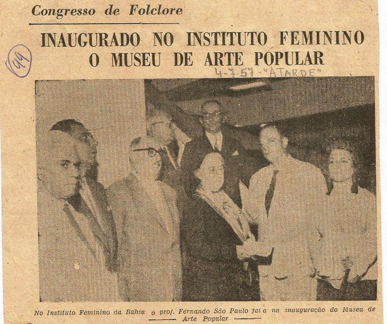 Nota: “No Instituto Feminino da Bahia, o prof. Fernando São Paulo [sic] fala na inauguração do Museu de Arte Popular – A Tarde, 04 jul. 1957.”