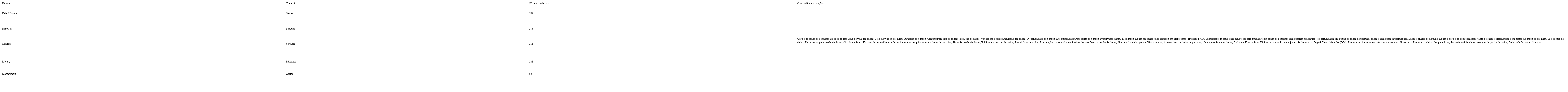 Outra evidência encontrada é o uso do termo bibliotecário de dados em outros estudos e em livros sobre o gerenciamento de dados de pesquisa em outras fontes e bases de dados – livros inclusive mais antigos do que o intervalo de datas selecionado.