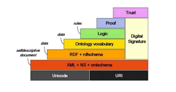 A questão da confiabilidade das informações, por outro lado, necessita de processos em que os agentes saibam identificar e validar a autenticidade das fontes e a confiança nas informações. Santos (2014) explica as camadas de tecnologia da web que auxiliam na arquitetura básica da web semântica proposta pela W3W e explicita com uma imagem de Koivunen e Miller (2001, p. 34).