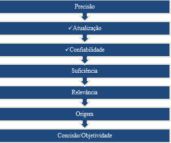Portanto, é preciso atentar à precisão, pois a informação precisa ser livre de erros; à atualização, que identifica quão recente é o conteúdo da informação obtida; à confiabilidade - identifica se a fonte e o conteúdo da informação têm credibilidade perante o público-alvo; à suficiência, que consiste na satisfatoriedade da informação fornecida para o fim a que se propõe; à relevância- identifica o valor, o interesse ou a implicação da informação; à origem/autoria - localiza o ente representado pelo registro da informação quando necessário e, por fim, atentar à concisão/objetividade da informação, pelas quais alguém apresenta um conteúdo de modo reduzido, atendo-se ao essencial (AROUCK, 2011). É inevitável constatar que os critérios elencados aqui são imprescindíveis e devem ser considerados no contexto do fazer bibliotecário, especialmente na ocasião da elaboração de um script de avaliação em seu cotidiano pessoal e laboral.