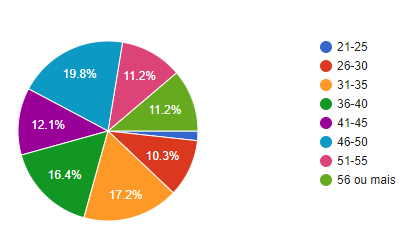 Ampliando o escopo do perfil, a pesquisa identificou que a faixa etária dos respondentes está acima dos 36 anos (70%), conforme demonstra o Gráfico