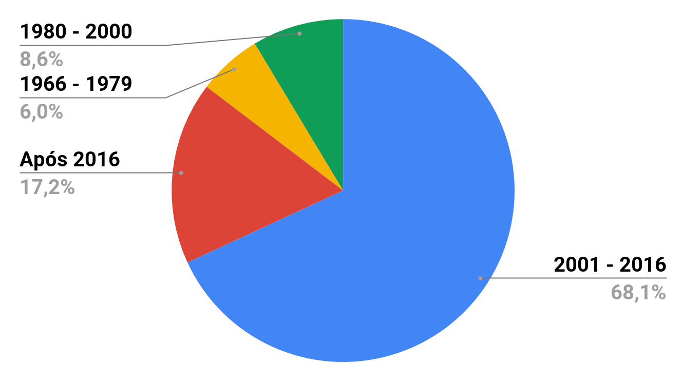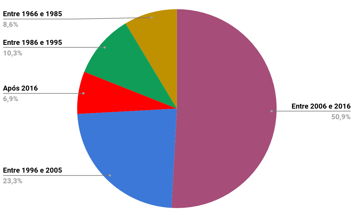 Por esse motivo, a pesquisa buscou conhecer o período que contempla o ano de formação dos respondentes, já que os que se graduaram após as supracitadas mudanças certamente têm maior familiaridade com o uso das TIC. O Gráfico 3 revela que mais de 50% dos respondentes se formaram no período de 2006 e 2016. Assim, os partícipes desta investigação tiveram acesso a disciplinas que possivelmente ajudaram na compreensão das TIC em seu cotidiano laboral.