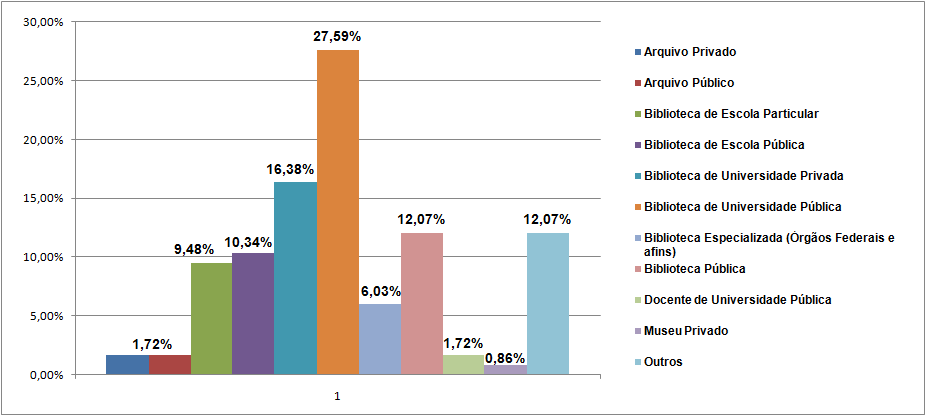 os ambientes de trabalho que mais absorvem mão de obra. Talvez esse dado se justifique pelo fato de que há uma regulamentação Ministério da Educação (MEC) que exige a presença do bibliotecário em bibliotecas universitárias.