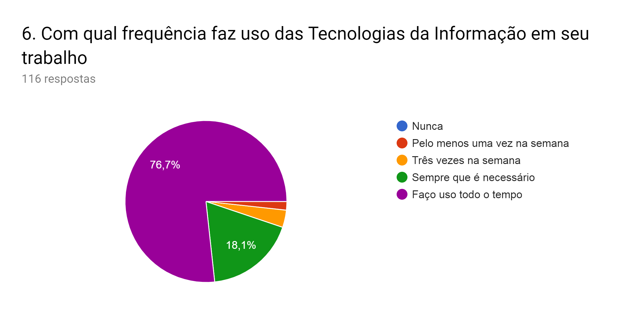 A Categoria 2 apresenta dados, instigantes a esta investigação, que elucidam como os bibliotecários usam os recursos tecnológicos e como procedem à avaliação das informações. Para tanto, inquiriu-se inicialmente acerca do contato que os respondentes têm com as TIC no seu corriqueiro ambiente de trabalho. Os dados demonstram que 76,7% dos respondentes usam tais recursos de forma contínua, o que revela a familiaridade que esses profissionais mantêm com as TIC.