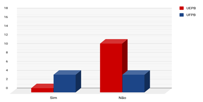 Os dados acima demonstram que o número de adesão AAPB, com base nas respostas, ainda é baixo, principalmente por parte dos egressos da UEPB, pois apenas 1 de 12 egressos (o respondente E5) afirmou possuir vínculo com a AAPB. Quanto às respostas dadas pelos egressos da UFPB, o número de vinculados se mostrou razoável, sendo 4 vinculados a cada 8 respondentes.