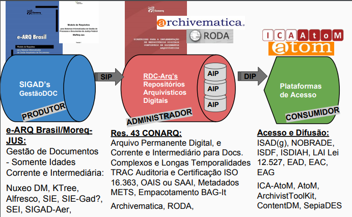 De fato, o que a resolução nos traz é a definição de uma cadeia de custódia completa e ininterrupta para os documentos digitais, que atenda desde a produção desses documentos até sua destinação final, por meio de um SIGAD, que inclua sua preservação permanente através de um repositório digital confiável, a exemplo do Archivematica, e que garanta seu acesso por meio de uma plataforma segura, como o AtoM, autêntica e integrada ao RDC-Arq. (LEHMKUHL; MACEDO; SILVA, 2018).