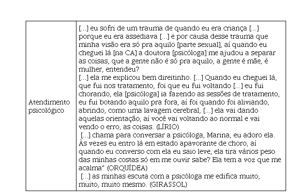 O atendimento psicológico e a mediação dos conteúdos informacionais são considerados importantes nesse processo, como pode ser observado nas falas de Lírio, Orquídea e Girassol, as quais se reproduz no Quadro 5.