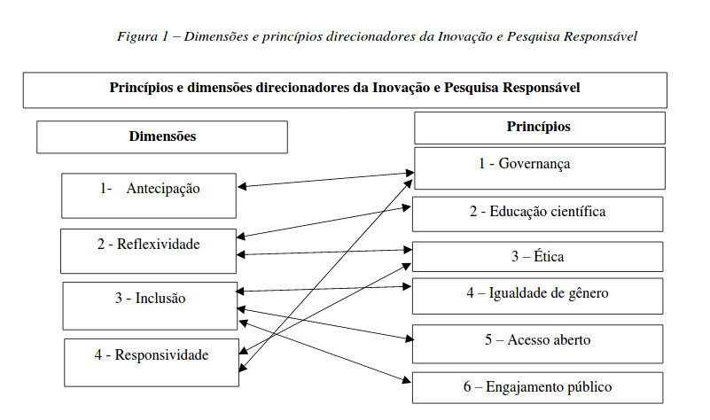 “As reflexões sobre a inovação e pesquisa responsável estão levando a novas discussões sobre a missão, o papel, a divisão do trabalho e como os programas transdisciplinares de ciência e inovação devem ser configurados” (POSTAL; RIBEIRO; BENATI, 2019, p.10). São quatro as dimensões, conforme explicam Stilgoe, Owen e Macnaghten (2013):