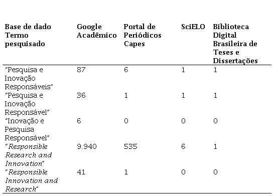 O artigo indicou a atual incipiência em pesquisas sobre PIR no Brasil por meio de busca em bases de dados sobre o termo e, ao mesmo tempo, a importância de fomentar o debate em torno da temática para se fazer ciência de forma mais participativa, colaborativa, responsável e crítica, com o engajamento dos mais diversos agentes para a construção de uma sociedade mais sustentável, engajada e cautelosa com o futuro.