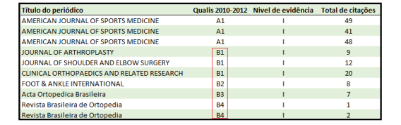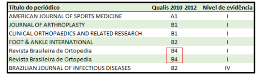 Níveis de evidência e níveis de periódicos: análise de impacto de artigos na área de Ortopedia e Traumatologia