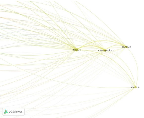 Os dados obtidos por meio da geração do grafo demonstram que os autores Dallas e Constantopoulos são os mais cocitados da rede. A força de ligação entre eles é de 337. A segunda maior força de ligação é entre Dallas e Ggavrilis, totalizando 224 cocitações (Figura 7).
