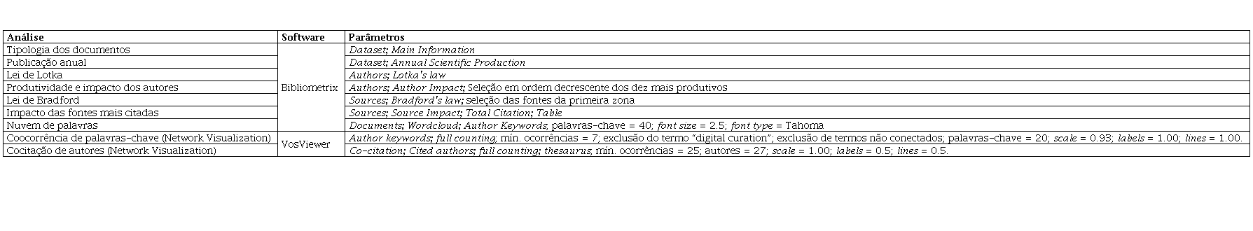 A análise do arquivo BibTeX ocorreu na biblioteca bibliometrix do software R (ARIA; CUCCURULLO, 2017) e a análise do arquivo CSV ocorreu no VOSViewer. Na próxima seção são apresentados os resultados.