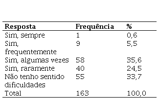 Quanto ao perfil dos 163 respondentes, verificou-se que 110 (67,48%) eram do sexo feminino e 53 (32,52%) do sexo masculino. Quanto à idade, verificou-se que a maior parte dos participantes concentra-se nas faixas entre 41 e 60 anos, como demonstra a Tabela 1, sendo, em tese, pesquisadores experientes.
