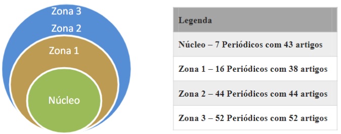 Machado Júnior et al. (2016) revelam que a Lei de Bradford possibilita estimar o grau de relevância de periódicos que atuam em áreas do conhecimento específicas. Tende-se a formar um núcleo dos periódicos com maior publicação de artigos sobre um tema, que, de alguma maneira, concentram uma determinada especialidade, seja pelo interesse dos pesquisadores, ou por sua qualidade. Em sequência, constitui-se um conjunto de zonas proporcionais. Desta forma, as zonas subsequentes ao núcleo apresentam gradativamente um volume maior de periódicos com reduzida produtividade sobre o assunto. Esse padrão de comportamento justifica a dificuldade de se processar a cobertura completa de um assunto.