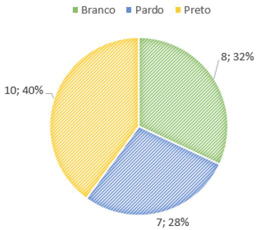 Já em relação ao sexo, observou-se que 18 (72%) dos indivíduos declararam-se do sexo masculino e sete (28%) do feminino. Resultado que pode ser comparado com os estudos de Dutra ( 2015), que ressalta certa tendência de uma maior presença feminina nestes espaços. Portanto, ao estudar o indivíduo não contemplado nas características básicas do visitante assíduo de museus, entendeu-se ser natural ter obtido o resultado em questão. O mesmo ocorre quando se observa a caracterização da amostra em relação a cor/raça dos entrevistados. Jennings e Jones-Rizzi (2017) já apontavam que o número de visitantes de museus em relação a sua cor era de uma maioria de pessoas brancas. O resultado obtido com a aplicação da pesquisa corrobora essa perspectiva ao apontar uma soberania de pessoas pretas e pardas (68%) como visitantes pouco assíduos ou quase incomuns em museus ( Gráfico 1).