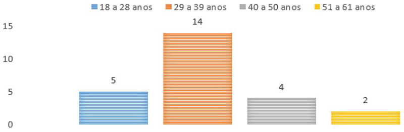 Em se tratando dos níveis de escolaridade, percebeu-se que a amostra detém escolarização acima do indicado pela literatura trabalhada nesta pesquisa. Se Bourdieu e Darbel (2016) apontam que existe uma tendência ascendente de visitação em museus para quão mais alta for a escolaridade do indivíduo, percebeu-se que os dados obtidos com a amostra não se consolidam de tal maneira, não podendo afirmar perspectiva análoga. Observa-se, que dos 25 indivíduos entrevistados, sete (28%) possuem ensino médio completo, cinco (20%) superior completo, cinco (20%) superior incompleto, três (12%) pós-graduação, três (12%) ensino fundamental completo e dois (8%) fundamental incompleto. Acredita-se, que um dos motivos mais plausíveis para se ter obtido este retorno da amostra investigada é exatamente o fato de que em se tratando da idade dos entrevistados ( Gráfico 2), a maioria encontra-se englobada em indivíduos entre 18 e 39 anos (76%).