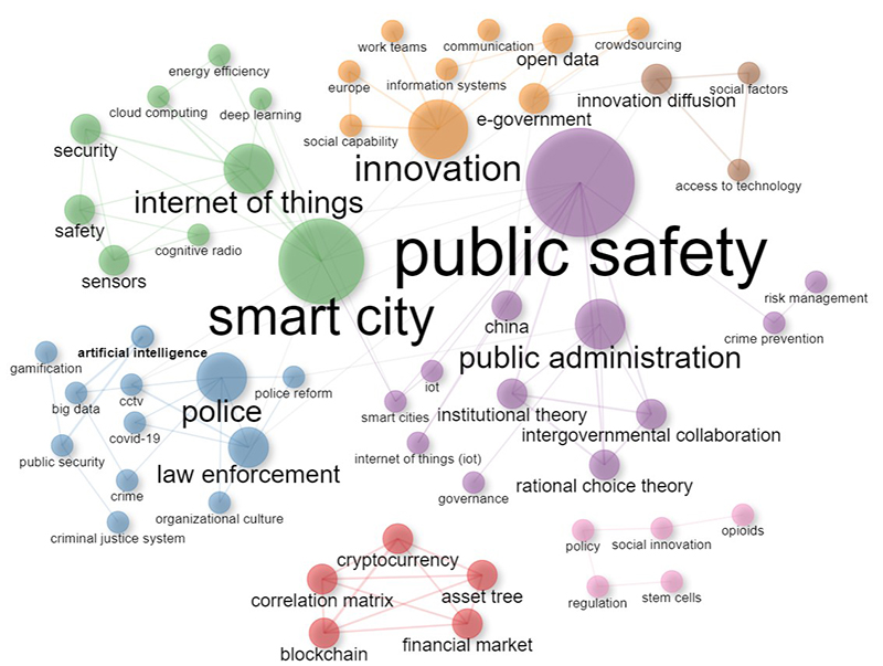 Abstract: Public security is a complex topic that encompasses different languages, actors and disciplines. It is interpreted from multiple paradigms and under different approaches that influence, from the most abstract stages of conceptualization and perception of insecurity, to phases of dissent about concrete proposals for its confrontation and control. Increasingly, public governance, academics, the private sector, and civil society are joining together in a network to address this issue, which has repercussions on the most fundamental human rights. This multiplicity of perspectives needs to be carefully understood and synthesized. For this reason, the present study was developed, which aims to outline the general picture of published scientific knowledge about innovation in public security. This is a descriptive study, with a quantitative approach and a bibliometric review. 261 publications were analyzed, without time, space or language filter, found in the Scopus database, based on the syntax: (“Public Security” or “Public Safety”) and Innovation. The results show that there are two strong, non-dichotomous movements being developed, concurrently, in the area of public security: the first, more disciplinary, focuses on the development of technologies and information management; the second, with a more transdisciplinary focus, deals, above all, with intelligent territorial occupation. More specifically, five thematic axes were identified in the articles: technologies, territorial occupation, law enforcement, administration and health. Another point, noticed when measuring communication flows, was the finding that international collaboration networks between researchers are still ephemeral, which may suggest a lack of maturation of learning networks.