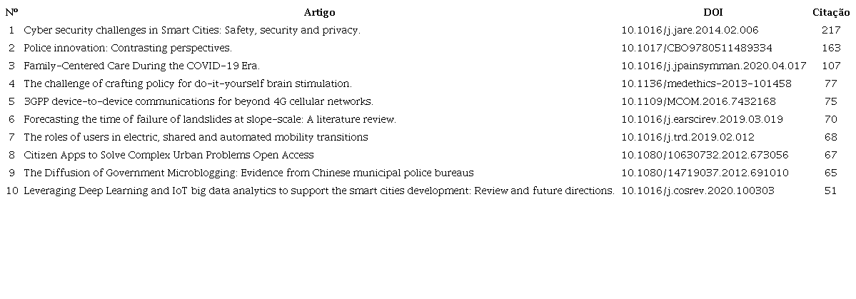 Keywords: Public security, innovation, bibliometrics, smart city, territorial occupation.