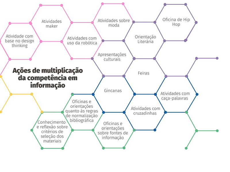 As ações realizadas por multiplicadores da competência em informação podem se referir desde o desenvolvimento de habilidades para a busca e uso da informação, até atividades educacionais e culturais que permitam a reflexão em torno de informações e contextos informacionais que auxiliem os sujeitos no desenvolvimento de seu pensamento crítico sobre a sociedade e que os instiguem a entender sua condição de sujeito informacional e social.