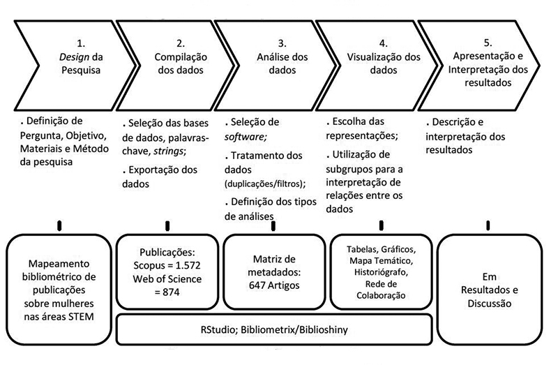 Afinal, qual é a dinâmica e evolução das publicações sobre o tema mulheres nas áreas STEM? Para buscar respostas à questão, o objetivo desta pesquisa foi a realização de um amplo mapeamento de literatura sobre o tema, por meio de uma revisão bibliométrica. Essa modalidade metodológica foi escolhida por permitir a compreensão sobre a evolução do conhecimento científico de modo confiável e por contribuir para familiarizar pesquisadores com o que há de relevante no tema enfocado.