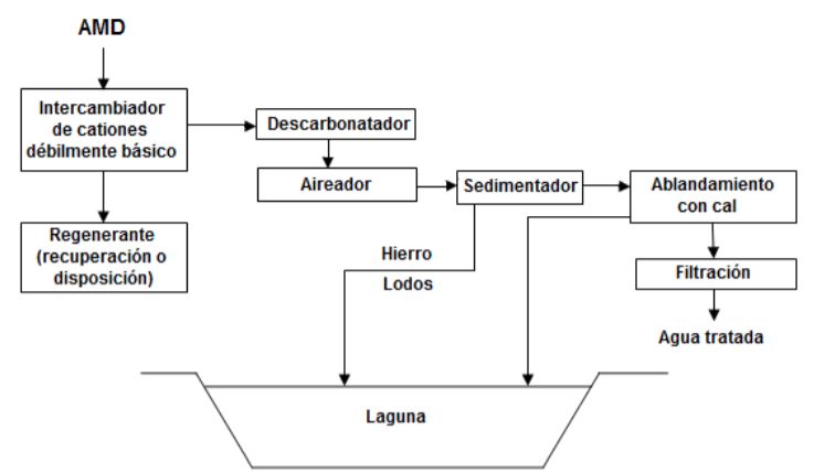 El ablandamiento químico, es empleado como un proceso de tratamiento para remover iones disueltos del AMD, considerando al efluente para uso industrial o como agua potable. Se consideran dos procesos para el tratamiento del AMD, el de cal-sosa y alúmina-calsosa (Nebgen et al. 1976).