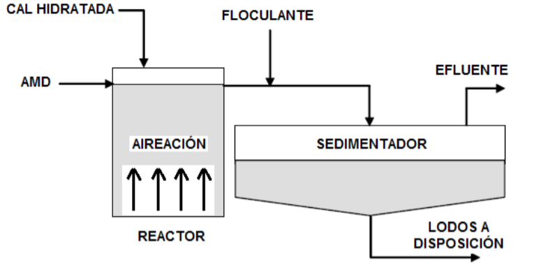 Como se mencionó anteriormente, el AMD, es una solución diluida de ácido sulfúrico, sulfato de hierro y iones en forma férrica y/o ferrosa; su tratamiento consiste en una neutralización mediante la adición de un álcali, oxidando el ion ferroso a la forma férrica soluble, y la remoción de metales precipitantes por el proceso de sedimentación. Este proceso es básico para el tratamiento de AMD, sin embargo, hay varias opciones para el diseño en las que se pueden integrar subprocesos al sistema general. Los sistemas de tratamiento más utilizados son: