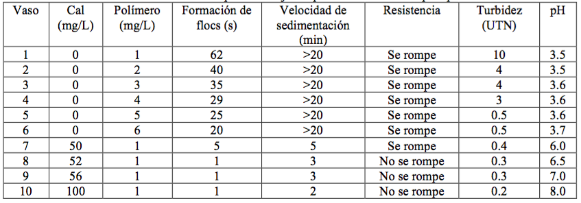 Otras pruebas realizadas fueron las de coagulaciónfloculación (prueba de jarras), pruebas de sedimentación, determinación de la recirculación óptima de lodos y determinación de la velocidad de oxidación, hasta llegar al diseño de la planta de tratamiento. Todas las pruebas se realizaron por duplicado.