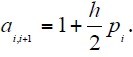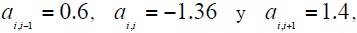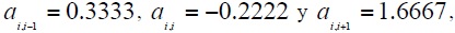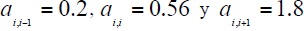 En este caso, el valor máximo que toma q(x) = 2 y el valor mínimo de N = 4 , por lo que se realizara la corrida para N = 20 , con un paso de h = 0.2 . Con estos parámetros de cálculo ya definidos se construye una tabla de valores para lasi j a ,y lasi f que se muestran en la tabla 3.