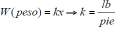 La constante del resorte se obtiene aplicando la ley de Hooke: