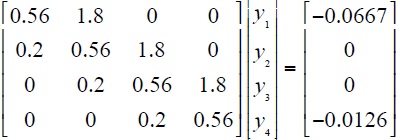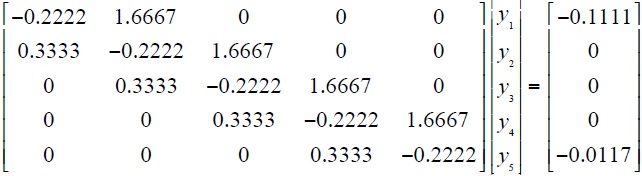 En el sistema de ecuaciones obtenido anteiormente se forma una matriz tridiagonal. Este sistema se resuelve utilizando el método de la matriz ampliada con una reducción de Gauss-Jordan.