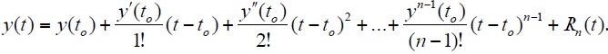 Para establecer el método numérico, primeramente se aproximan la primera y segunda derivadas de una función generalizada y(t) a partir del desarrollo en series de Taylor alrededor de un puntoto, esto es,